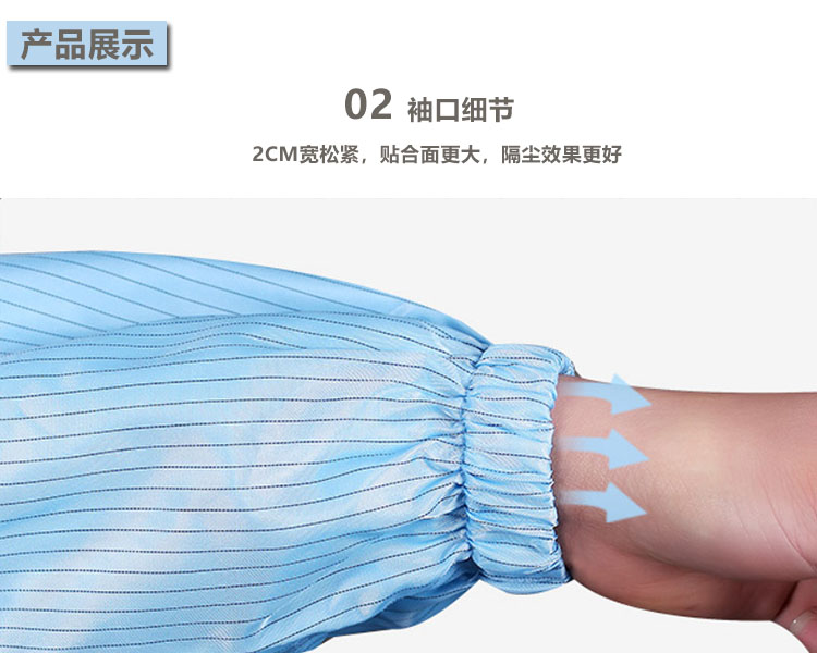 防靜電無塵連體服采用的導電綢面料除了具有良好的防靜電功能外,其面料同時還具有本身不發塵、不沾塵、阻隔性好,高密度等功能,一般應用于實驗室、無塵凈化車間里。根據潔凈室的要求,可以選擇0.5CM條紋、0.5CM網格、0.25CM網格等導電綢面料的無塵服。