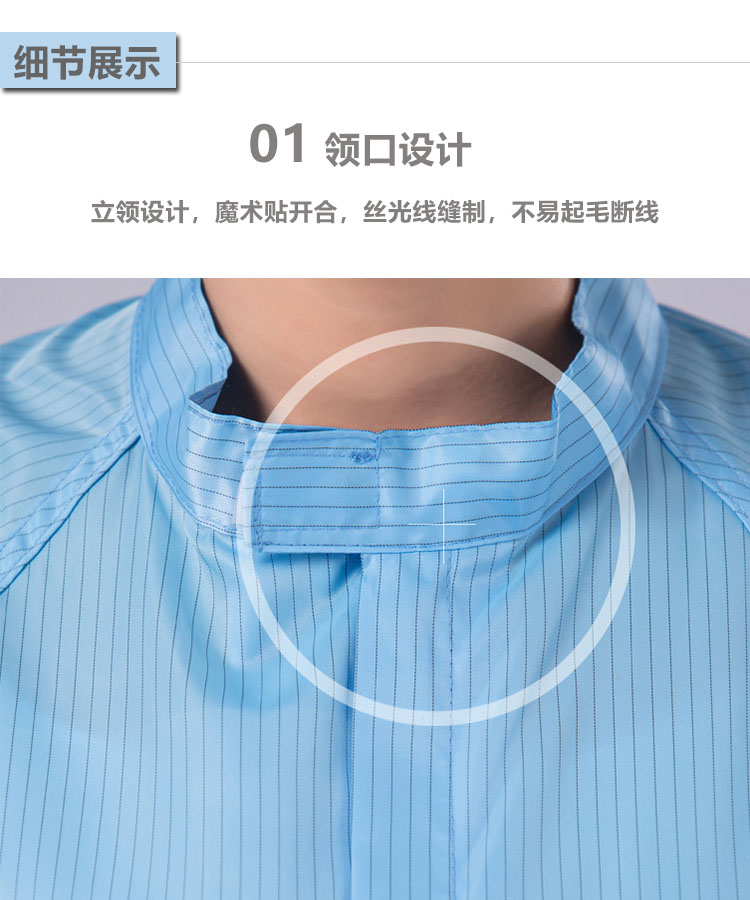 防靜電無塵分體服是由專業的防靜電面料制作,采用滌綸長絲與高性能導電纖維編織而成,具有高效、永久的防靜電、防塵性能,能有效釋放人體靜電荷,從而滿足高級別無塵環境的要求。廣泛應用于電子電器、儀器儀表、食品、生物制藥、實驗室等無塵車間及產線。