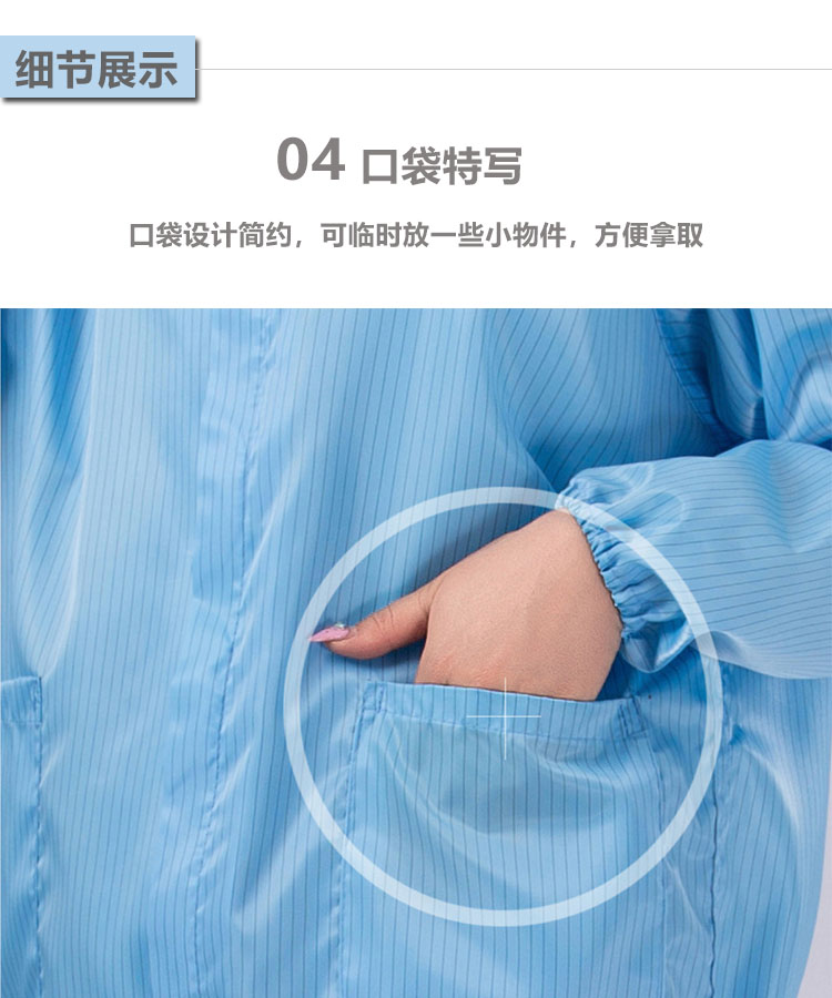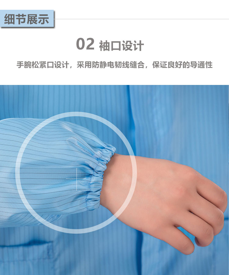 防靜電無塵分體服采用的導電綢面料除了具有良好的防靜電功能外,其面料同時還具有本身不發塵、不沾塵、阻隔性好,高密度等功能,一般應用于實驗室、無塵凈化車間里。根據潔凈室的要求,可以選擇0.5CM條紋、0.5CM網格、0.25CM網格等導電綢面料的無塵服。