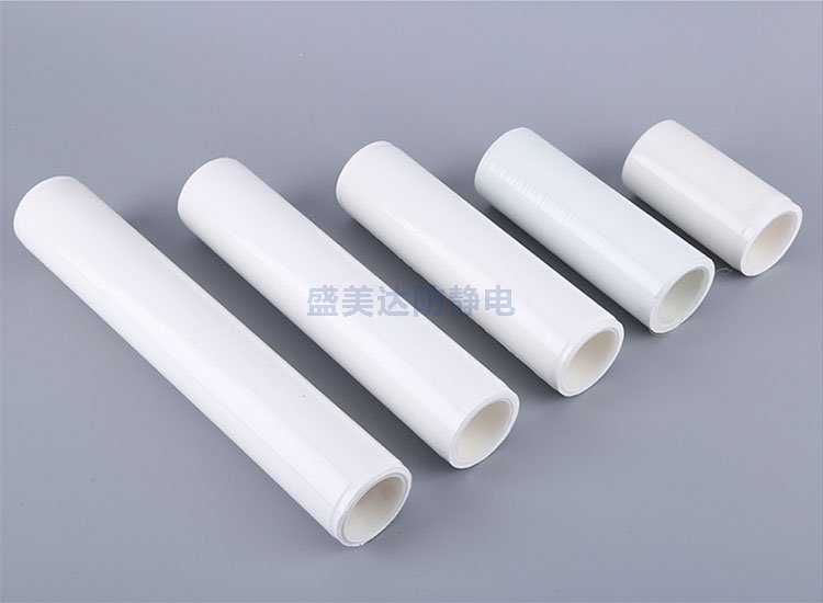 粘塵滾筒基材為優質聚乙烯PE膜,配合環保型聚丙烯酸酯膠粘劑(水溶性)復合而成,PE膜上設有預裁線,方便撕掉,優多種粘度可供選擇,環保不脫膠無污染,能快速有效地清除各種灰塵顆粒,可在千級、萬級無塵車間使用,是潔凈無塵室除塵的重要手段之一。
