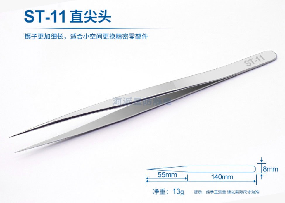 | ST-11 | 鑷子更加細長,適用于精密電子部件中操作 | ||||||